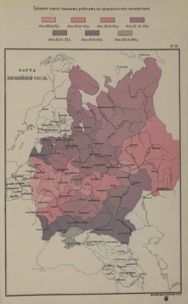 Источник: Короленко С.А. Вольнонаемный труд в хозяйствах владельческих и передвижение рабочих в связи со статистико-экономическим обзором Европейской России в сельскохозяйственном и промышленном отношениях. – Санкт-Петербург: типография В. Киршбаума, 1892
