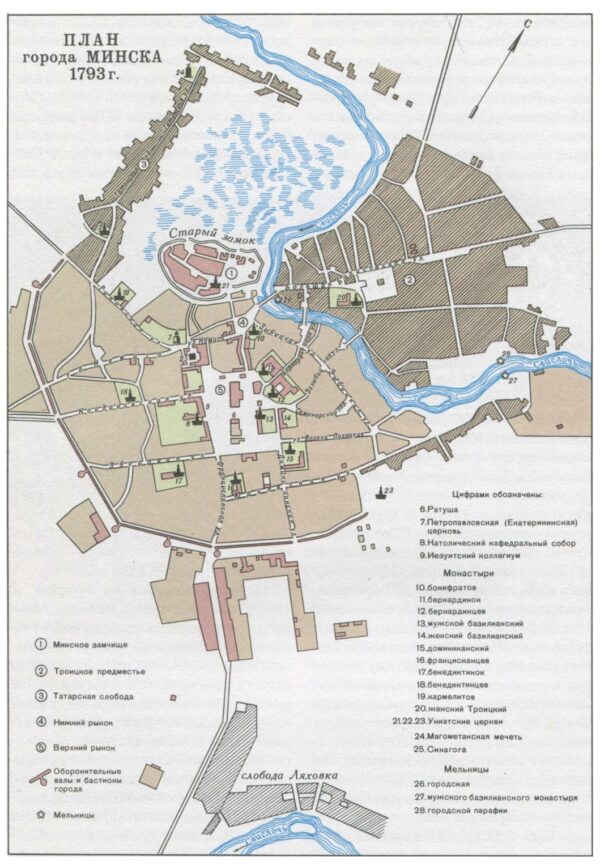Цікава рэканструіраваны «План горада Мінска 1793 г.» з 2х-моўнага выдання «Гісторыя Мінска» (2006)