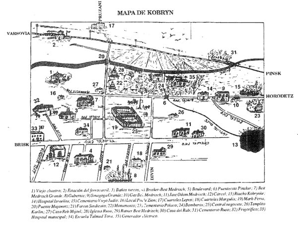 Карта довоенного еврейского Кобрина на идиш