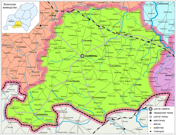 Карта на основе карты Виленсокго воеводства времен межвоенной Польши 1928 года источник и описание павета ЗДЕСЬ