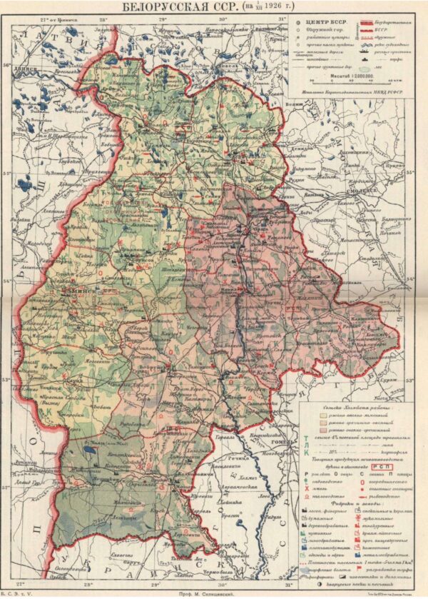 Источник: 5 том первого издания Большой советской энциклопедии. Нынешние Брестская и Гродненская область, север и запад Минской, запад Витебской и маленький кусочек Гомельской (правобережье реки Случь) областей — в составе Польши. Гомельская область восточнее Мозыря пока в РСФСР; решение о включении Гомельского и Речицкого уездов в состав БССР уже принято 18 ноября 1926, но на…