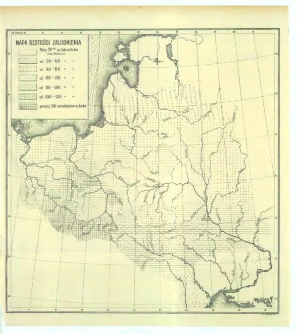 Карта плотности населения исторической Речи Посполитой, изд.1921