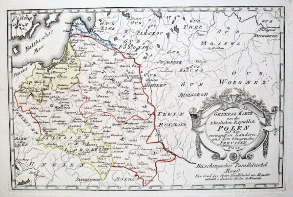 Reise Charte durch das Konigreich Polen полное название: Reise Charte durch das Königreich Polen mit allen darzu gehörigen Laendern / verfertiget von J[ohann] G[eorg] Schreibern in Leipzig Автор: Schreiber, Johann Georg Издана в атласе карт в г.Лейпциге в 1749 году