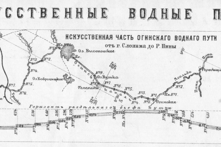 Канал Огинского. Огинский водный путь. Старая карта. Слоним. Телеханы. Пина.