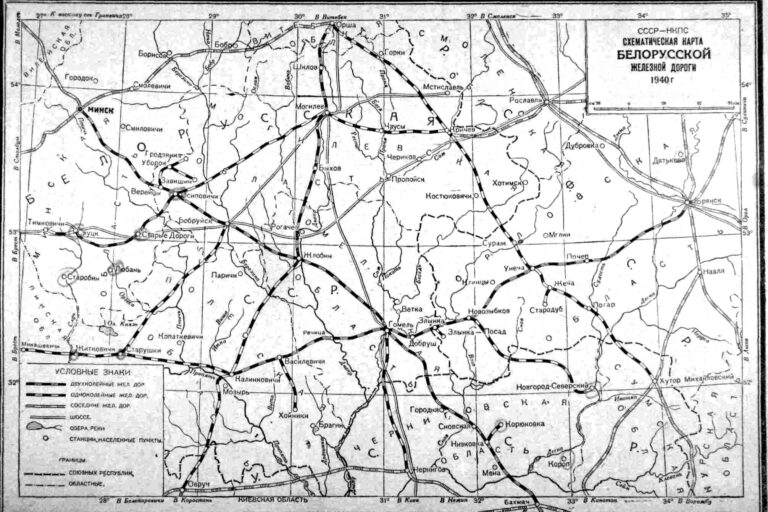 Старая карта железных дорог Белоруссии в 1940 году. 1940. Железнодорожная сеть в БССР