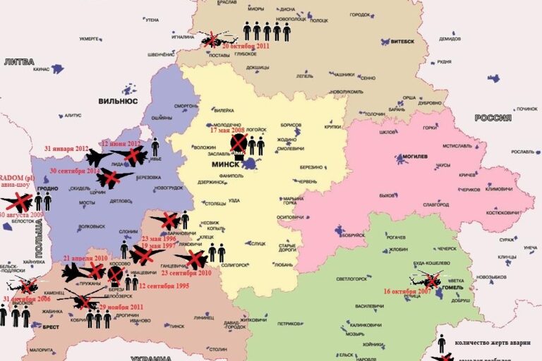 В связи с падением 30 сентября в Беларуси еще одного СУ-25, была создана карта статистики летных происшествий в Беларуси за время существования независимого государства. Всего за время существования белорусские ВВС потеряли в катастрофах 10 летчиков, 7 самолетов и 2 вертолета. С 1970 по 1997 годы, по подсчетам военных, в авиации ВВС и войск…