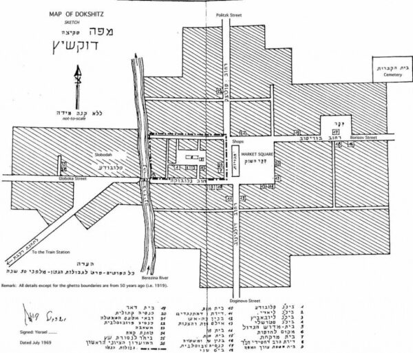 План Докшиц перед войной Легенда 1. Слободская синагога 2. Ляди синагога 3. Любавиц синагога
