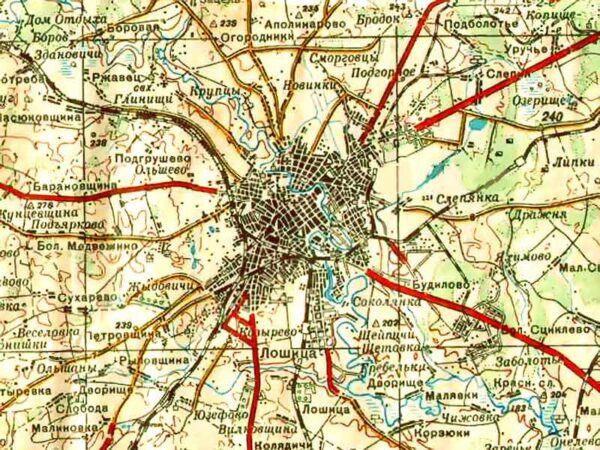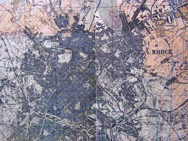 План города Минска. Подготовлен в июле 1941 командиром строительной части 9. Далее файл с подробным описанием названий улиц, предприятий и учреждений с переводом на русский в текстовом формате MS Word minsk1941 Также подробное описание карты можно онлайн прочитать ЗДЕСЬ