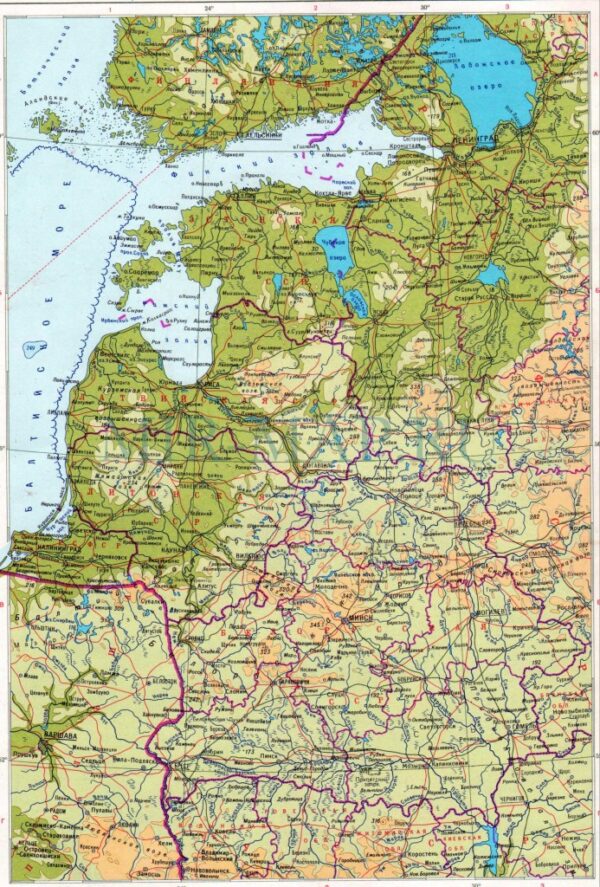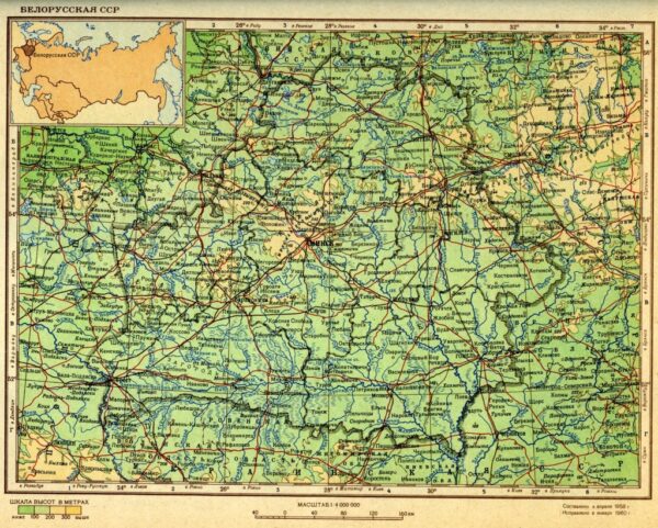 старая физическая карта Белоруссии БССР. старая карта 1960 год