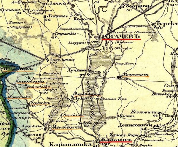 Старая карта. Окрестности Рогачева.1853 год Старая карта Рогачева. Жлобин