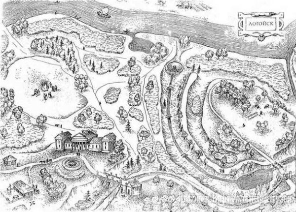 Карта Логойска. парк Тышкевичей. старое фото парка Тышкевичей.Старый Логойск
