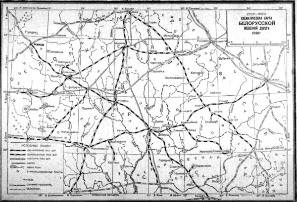 Старая карта железных дорог Белоруссии в 1940 году. 1940. Железнодорожная сеть в БССР