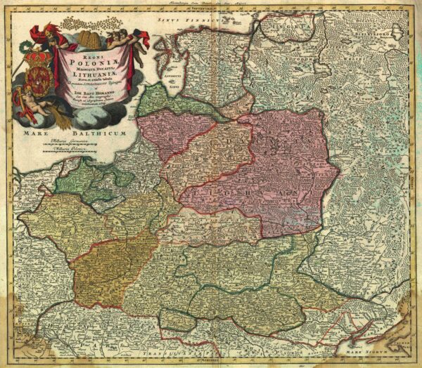 Старинная карта Королевства Польша и Великого Княжества Литовского. 1739 год. Автор: Johann Baptist Homann (1663 — 1724). Подробно о нем здесь