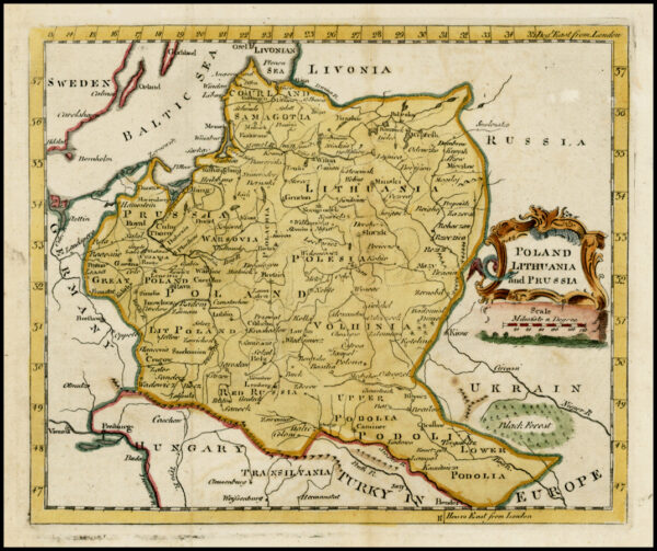 Thomas Jefferys.1764. London. Poland? Lithuania and Prussia Очень похожая карта от этого же картографа уже публиковалась ранее. Здесь карта из другого атласа и другого (1764) года.