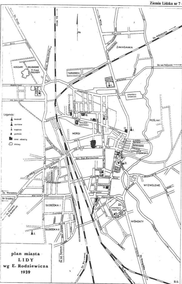 старая карта города Лида. Польский план-схема Лиды. 1939 год
