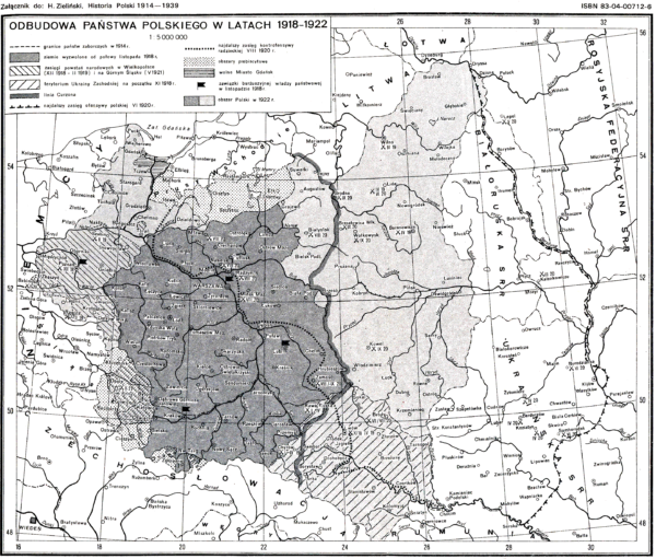Очень интересная и редкая в наших краях карта из книги Historia Polski 1914 – 1939, которую написал польский историк Henryk Zielinski . Здесь и советско-польская война(включая отмеченные места битв) и референдумы и восстания за присоединение к Польше…