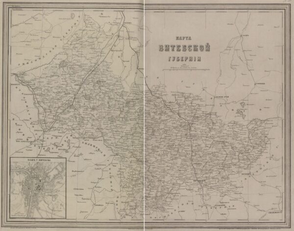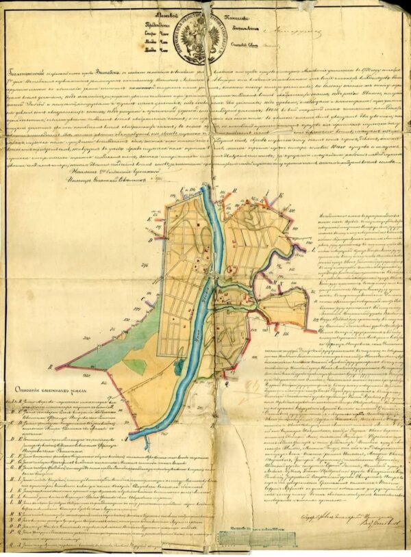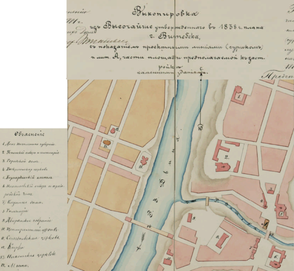 Віцебск, канец XVIII ст. План гарадскіх земляў Віцебска 1784 г. Складзены ў сувязі з правядзеннем «генеральнага межавання». Захаваўся ў копіі другой паловы XIX ст. НГАБ. Ф.1437. Воп.1. Спр.7746
