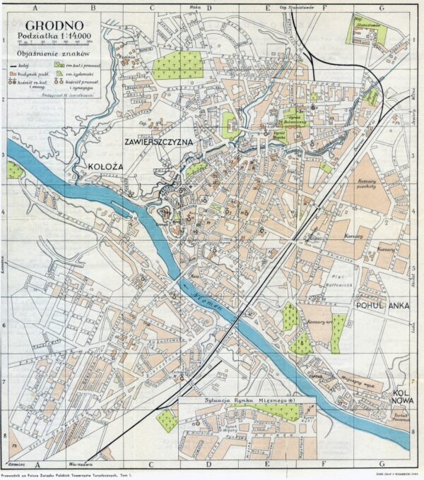 старая карта Гродно.plan miasta Grodna 1935 польский план Гродно. old map of Grodno.
