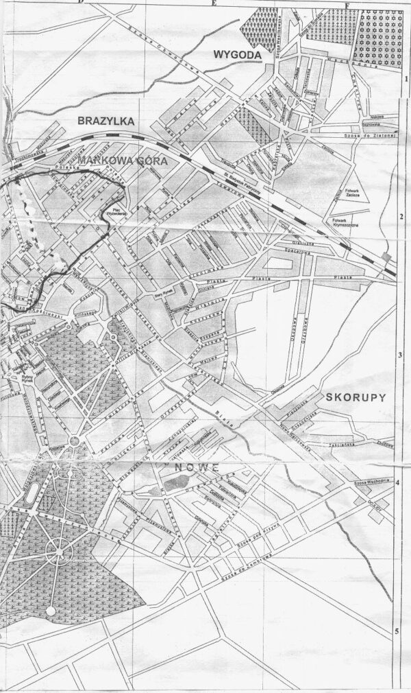 A-вулiца Вiленская; B-касцёл рымскi; С-манастыр пiярау; D-рынак; E-вулiца Дваравая; F-вулiца Замкавая; G-царква прыходская; H-замак;I-касцёл i манастыр кармелiтау; K-вулiца Крывая; L-школа жыдоуская; M-вулiца Камiёнская; N-прадместе Зарэчча; O-унiяцкая царква ; P-дворстарасты Лiдскага; Q-млын; R-сяленне Зарэчнае; S-корчмы; T-фальварак Кураушчызна; U-вёсачка,якая належыць да прыхадской царквы; V-ратуша; X-дом лiдскага маршалка; Y-вулiца, на якой земская канцылярыя.
