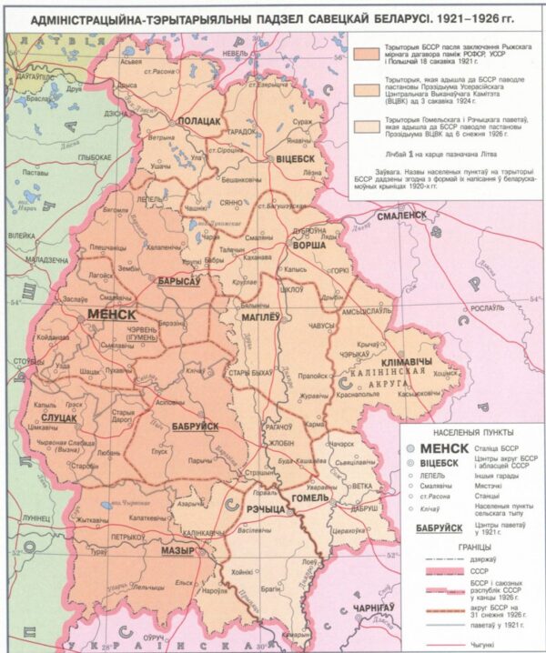 БССР. 1921-1926 года БССР 1935-37 Западная Белоруссия в составе Польши (карта 1931-39)