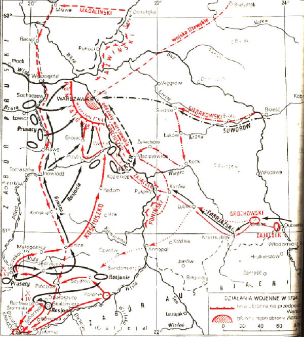 Достаточно подробная карта передвижения войск повстанцев и российской армии во время восстания 1794 года
