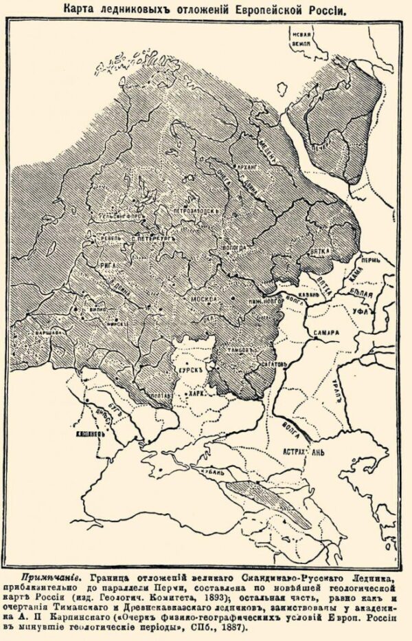 карта ледниковых отложений Европейской России. Карта ледника.1897