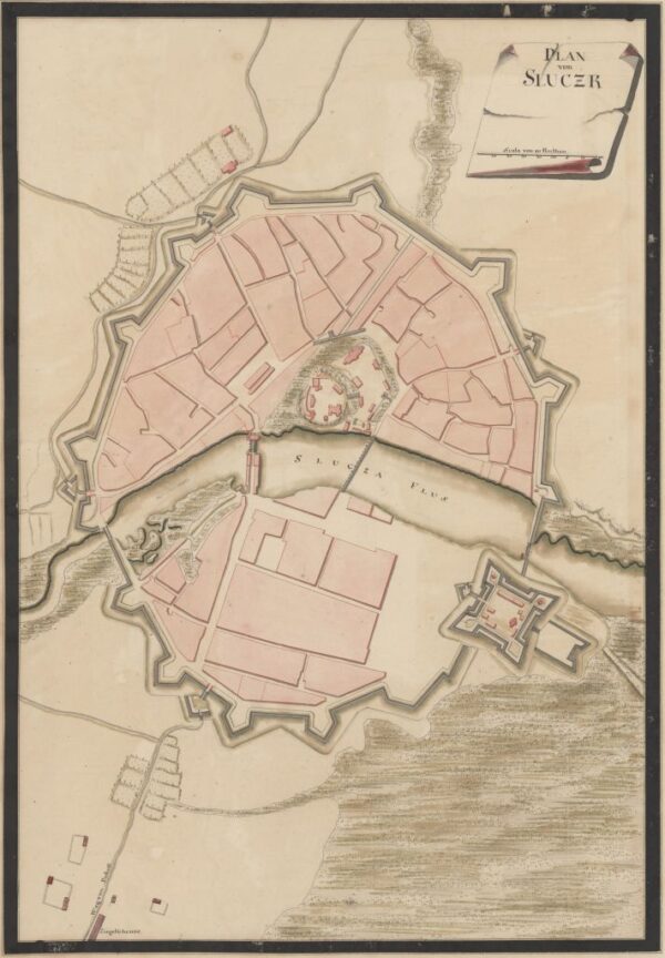 Карта города Слуцка в Минской губернии, сделана в 1811 году по приказу губернского правительства после пожара. Укрепления Слуцка. Схема.